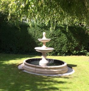 We were given the opportunity to construct this authentic, very heavy fountain in the rear garden of a house in Cheadle Hulme. It stands about 2 metres tall by 3 metres wide