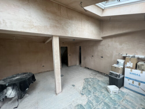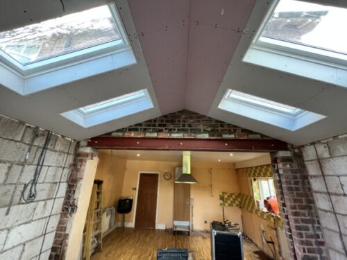 Start of a rear extension with re modelled existing roof to incorporate a vaulted ceiling with Velux’s, Structural alterations to interior